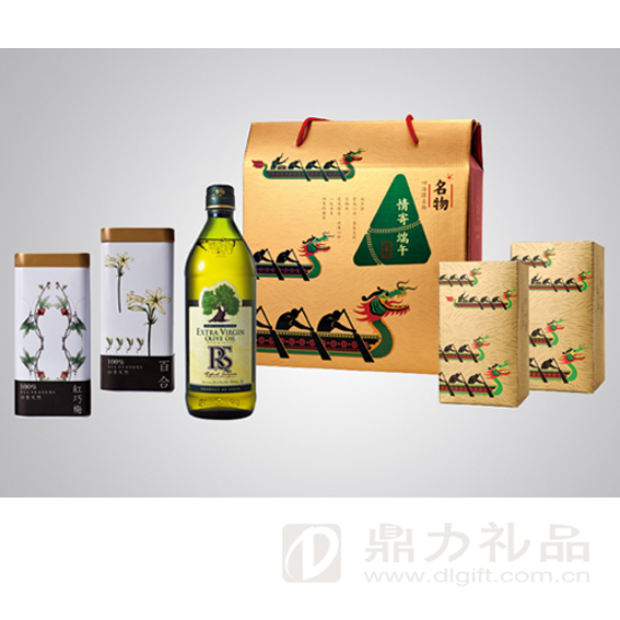 产品特点:橄榄油富含不饱和脂肪酸、多种维生素、无胆固醇,为营养珍品。干红葡萄酒,养颜美容抗衰老。粽子具有清热解暑、益气生津、养血安神的功效。